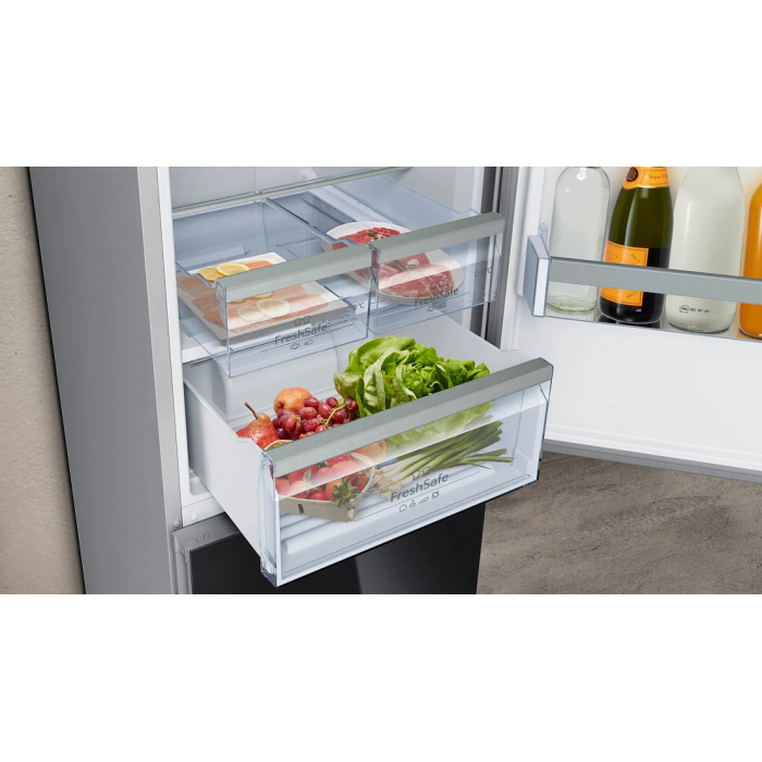 ◄0 ° C► 2 ящикa FreshSafe 2 с контролем температуры на выдвижном лотке - Рыба и мясо остаются свежими в 2 раза дольше.