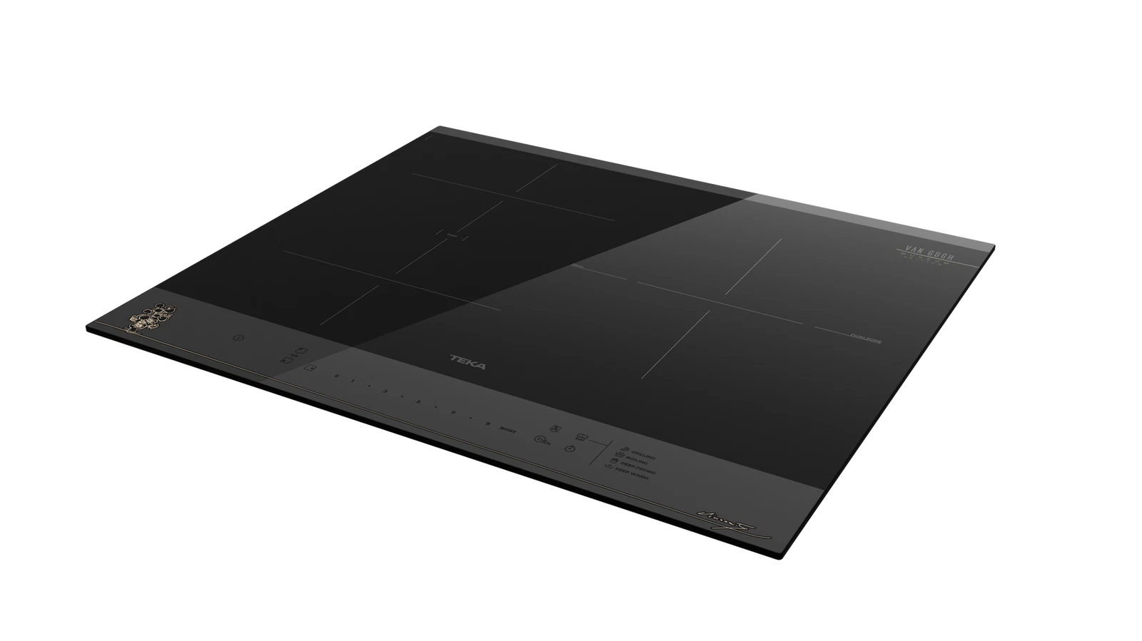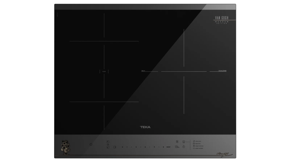 60-сантиметровая индукционная панель из эксклюзивной коллекции Van Gogh сочетает в себе художественное наследие великого мастера с современными технологиями приготовления. Черная стеклокерамическая поверхность Quartzuim Glaskeramik® украшена изысканной шелкографией с подписью Ван Гога и эскизом подсолнухов в благородном цвете шампань, превращая кухонную технику в подлинное произведение искусства.