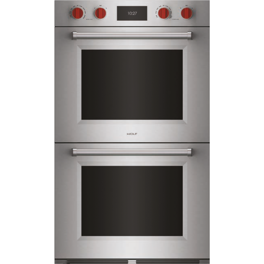 Сдвоенный духовой шкаф Professional ICBDO3050PM/S с двойной системой конвекции VertiCross™ совокупным объемом 250 литров может быть дополнен на выбор классическими ручками Wolf красного цвета или, если желаете, черными и стальными.