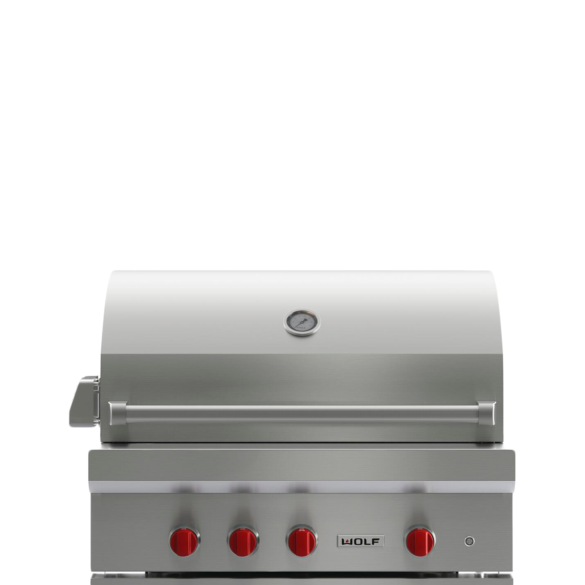 Подобно аналогичным грилям для использования дома газовые грили Wolf для использования вне помещения сохраняют те же характеристики элементов, изготовленных из высокопрочной стали. Данный гриль шириной 914 мм имеет мощные конфорки через каждые 127 мм
