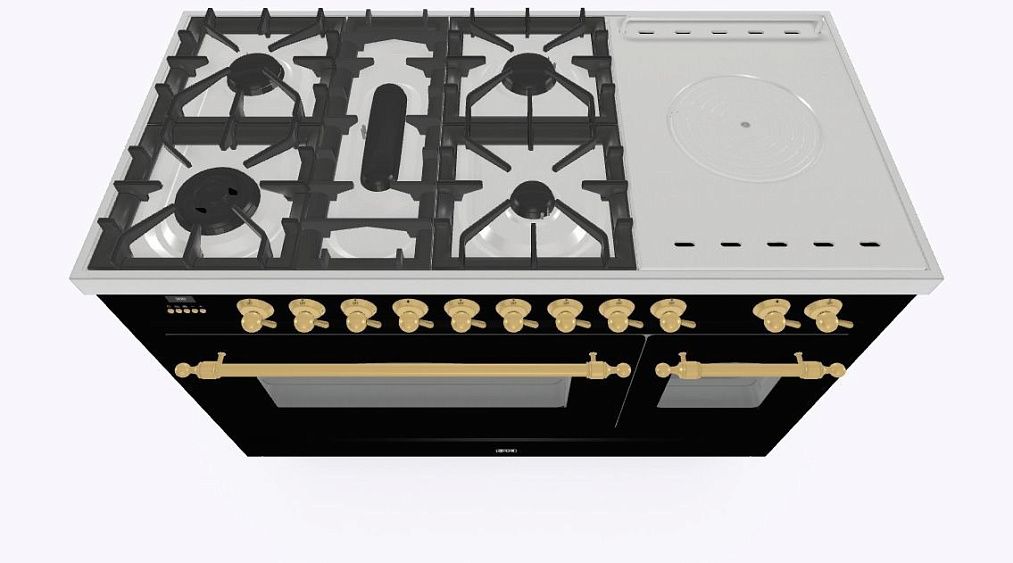 • Тип конфорок: 5 газовых, чугунная тарелка «Coupe de Feu» с кольцами