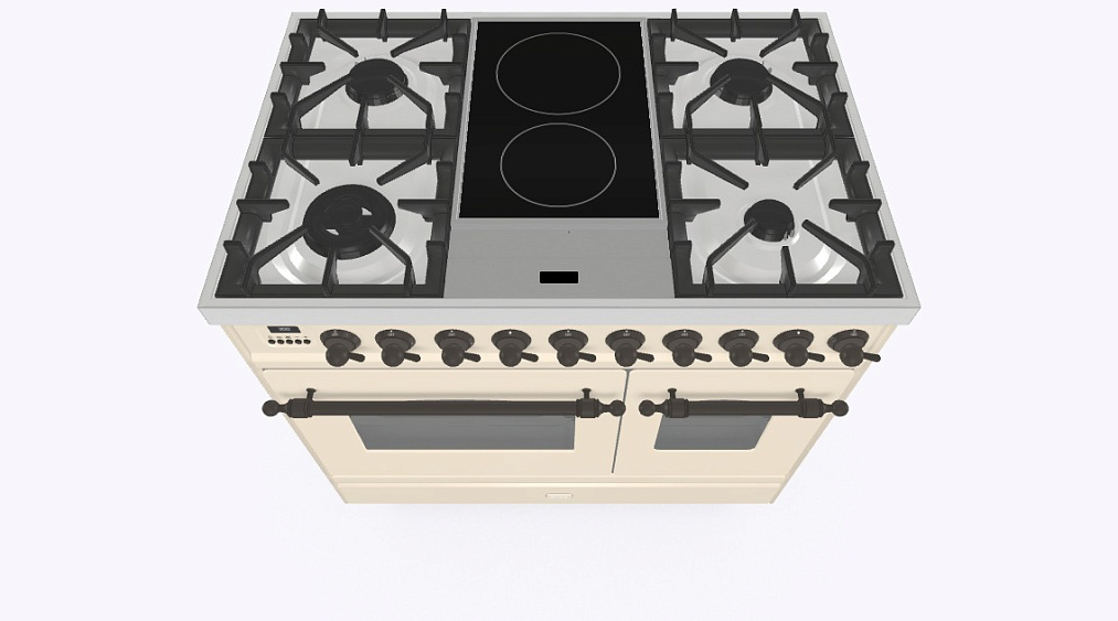 4 газовых, 2 индукционные варочные зоны, двухконторная конфорка DUAL