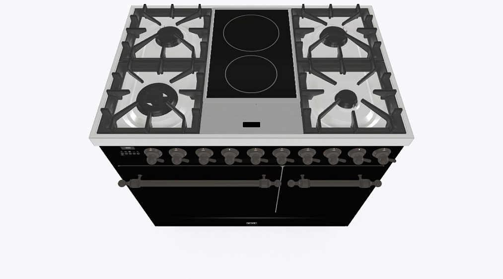 4 газовых, 2 индукционные варочные зоны, двухконторная конфорка DUAL
