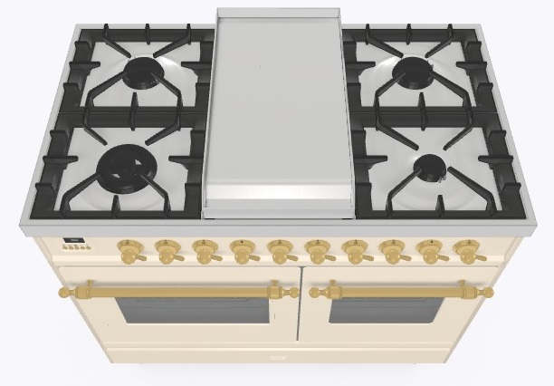 • Тип конфорок: 4 газовые конфорки, WOK конфорка, жарочная поверхность Fry Top