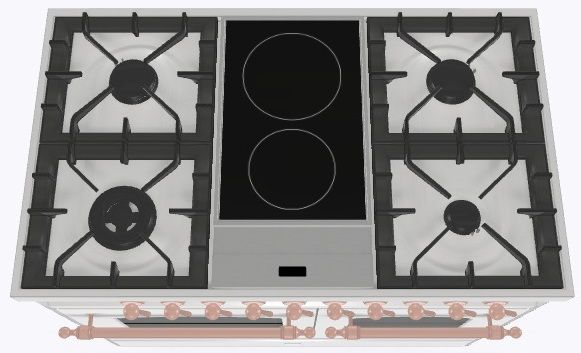 2 индукционные, 4 газовые, 1 Dual конфорка