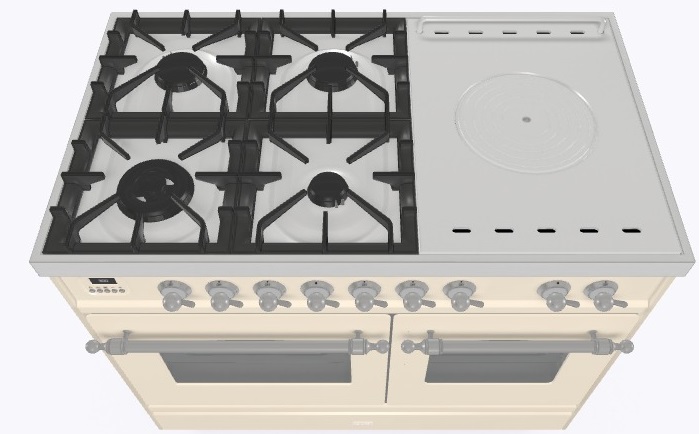 4 газовые конфорки, Dual конфорка, жарочная поверхность Coup de Feu