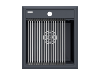 Материал мойки устойчив к сколам, царапинам и деформациям. На горизонтальных гранях чаши мойки предусмотрены специальные выступы-ступеньки, которые позволяют использовать такие аксессуары, как ролл-маты, доски, коландеры и пр. для создания дополнительной рабочей поверхности на кухне.