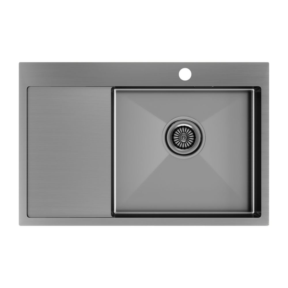 Мойки KRONER 78F в оттенках BG и GM имеют прочное PVD покрытие, которое нанесено на нержавеющую сталь. Оно особенно устойчиво к появлению царапин и истиранию, не содержит микротрещин и является экологически чистым.