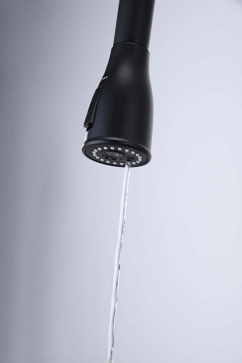 Смеситель LANGE оснащен функциями подключения фильтра питьевой воды, выдвижения излива и двумя режимами подачи водопроводной воды: струя и душ.