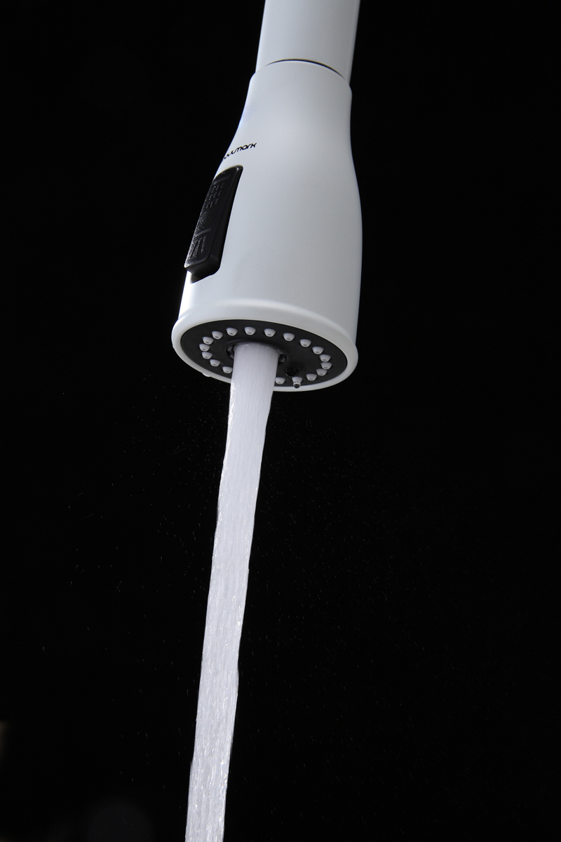 Помимо подачи стандартной струи, смеситель оснащен функцией подачи воды в режиме «душ» для идеального промывания посуды и продуктов