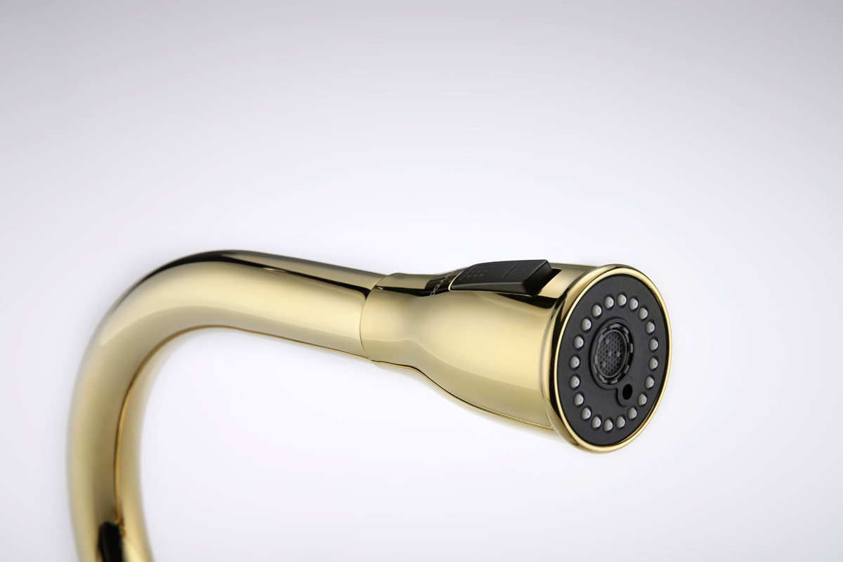 Смеситель LANGE оснащен функциями подключения фильтра питьевой воды, выдвижения излива и двумя режимами подачи водопроводной воды: струя и душ.