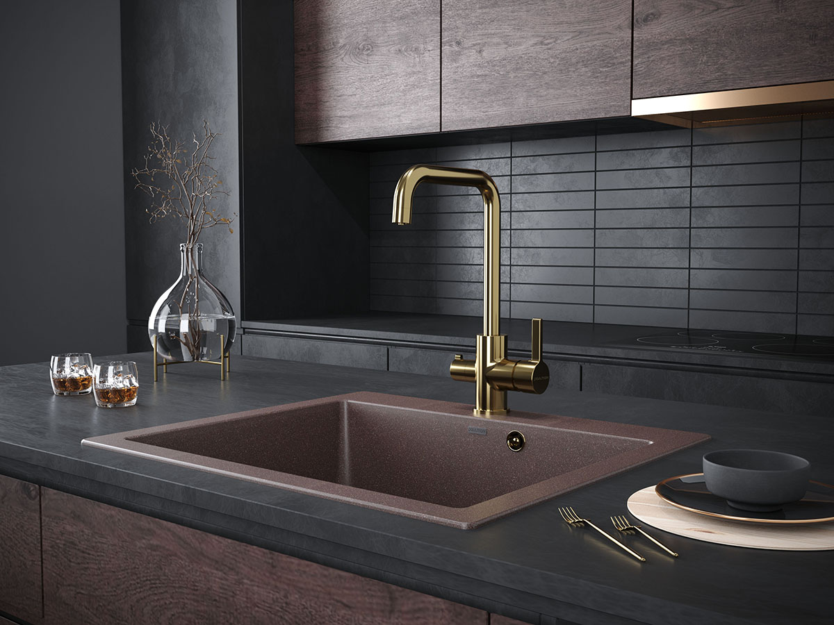 Смеситель для кухни LOGAS изготовлен из высококачественной латуни, которая отвечает высочайшим европейским стандартам качества, не содержит свинца, не разрушается со временем и безопасна для здоровья.