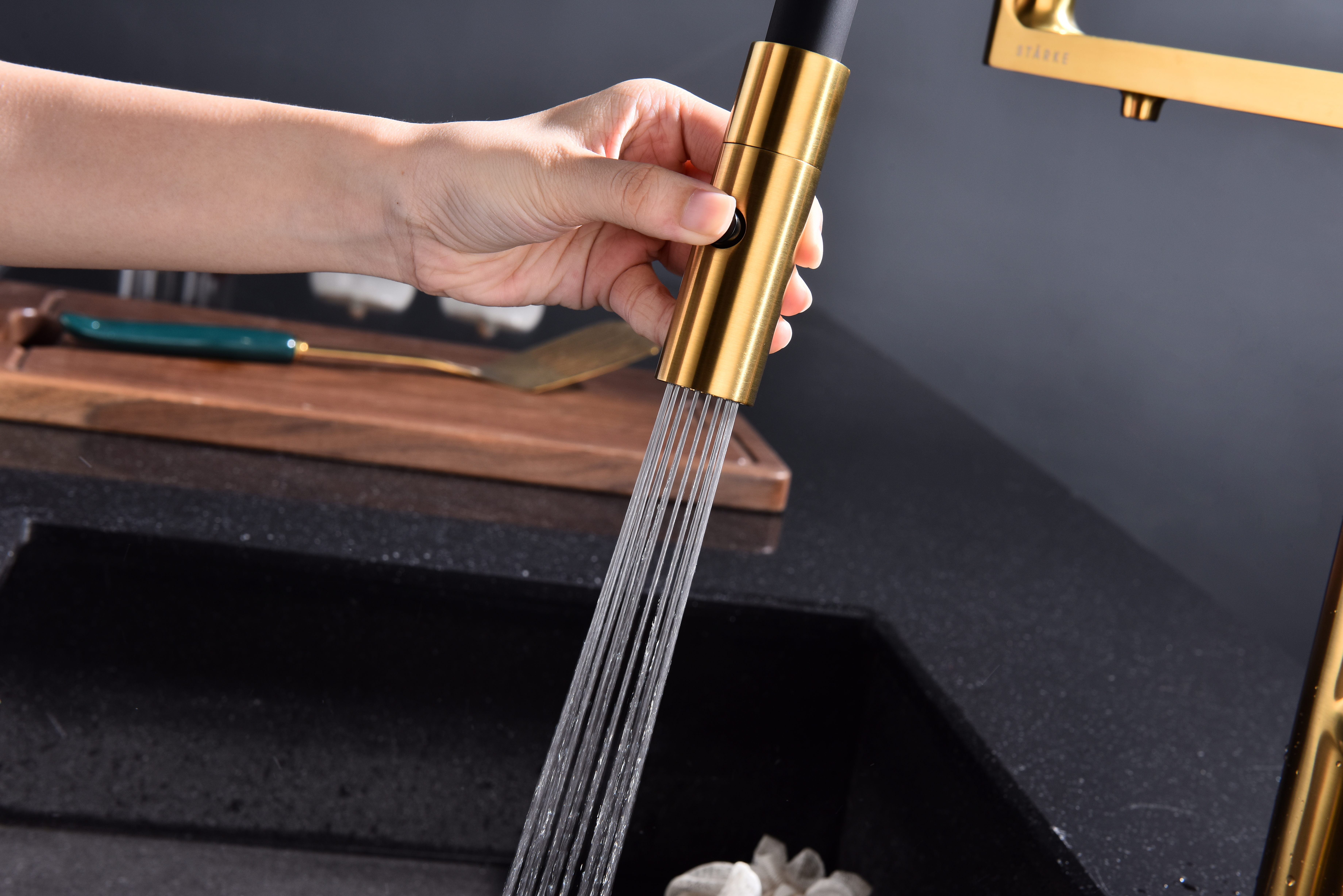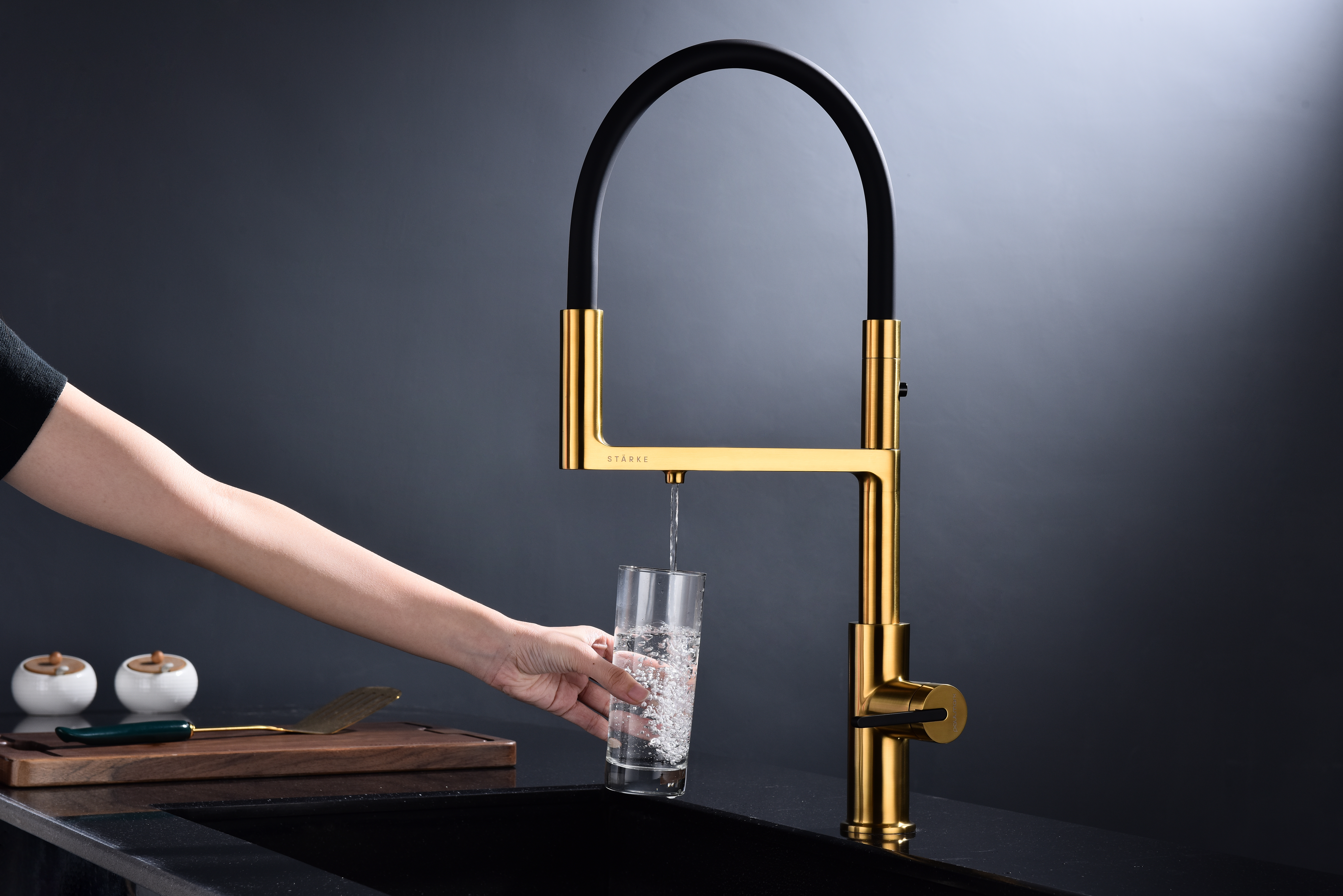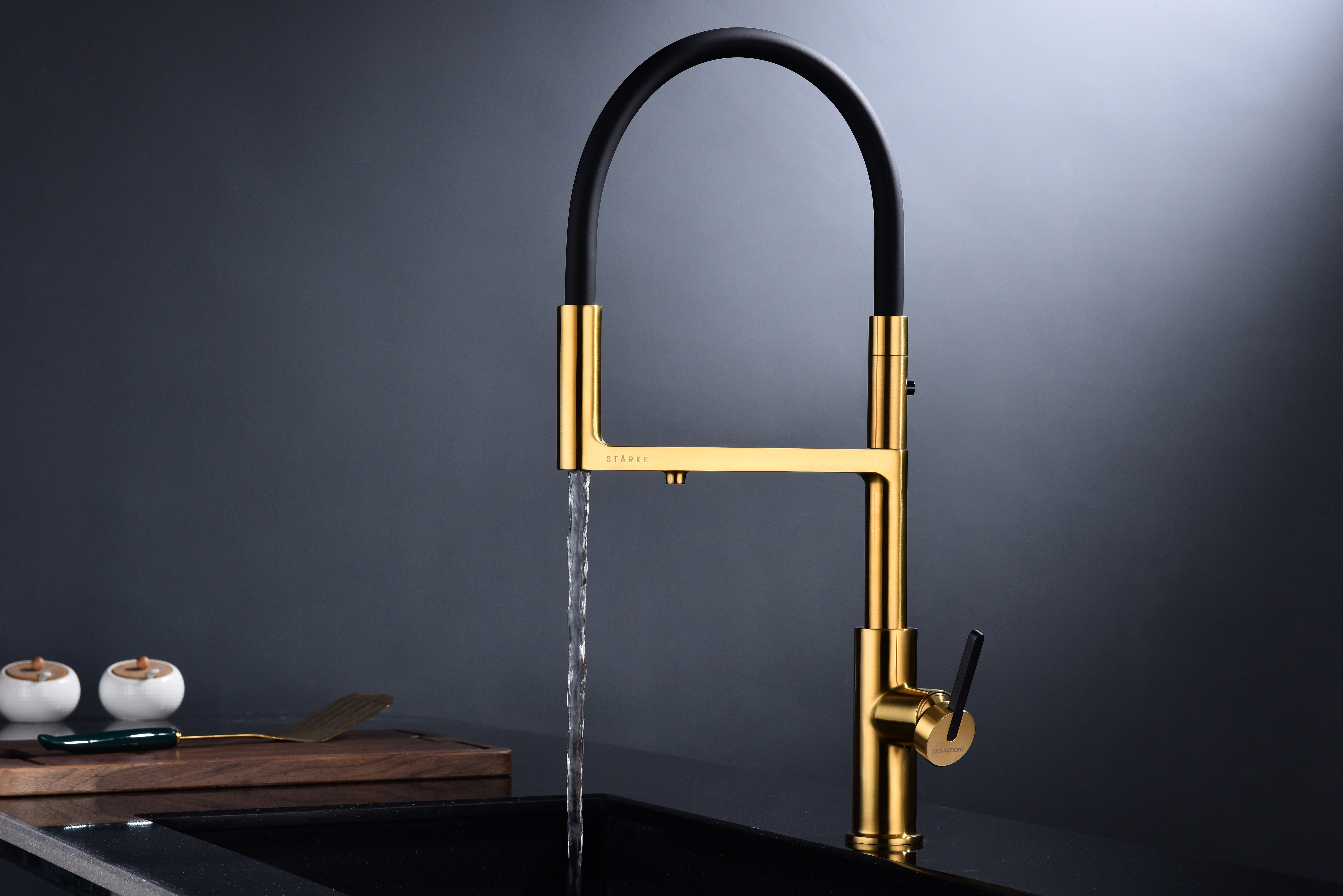 Многофункциональный смеситель для кухни TORNADO – модель премиальной серии «Starke» кухонной сантехники бренда Paulmark изготовлен из высококачественной латуни, которая отвечает высочайшим европейским стандартам качества, не содержит свинца, не разрушается со временем и безопасна для здоровья.